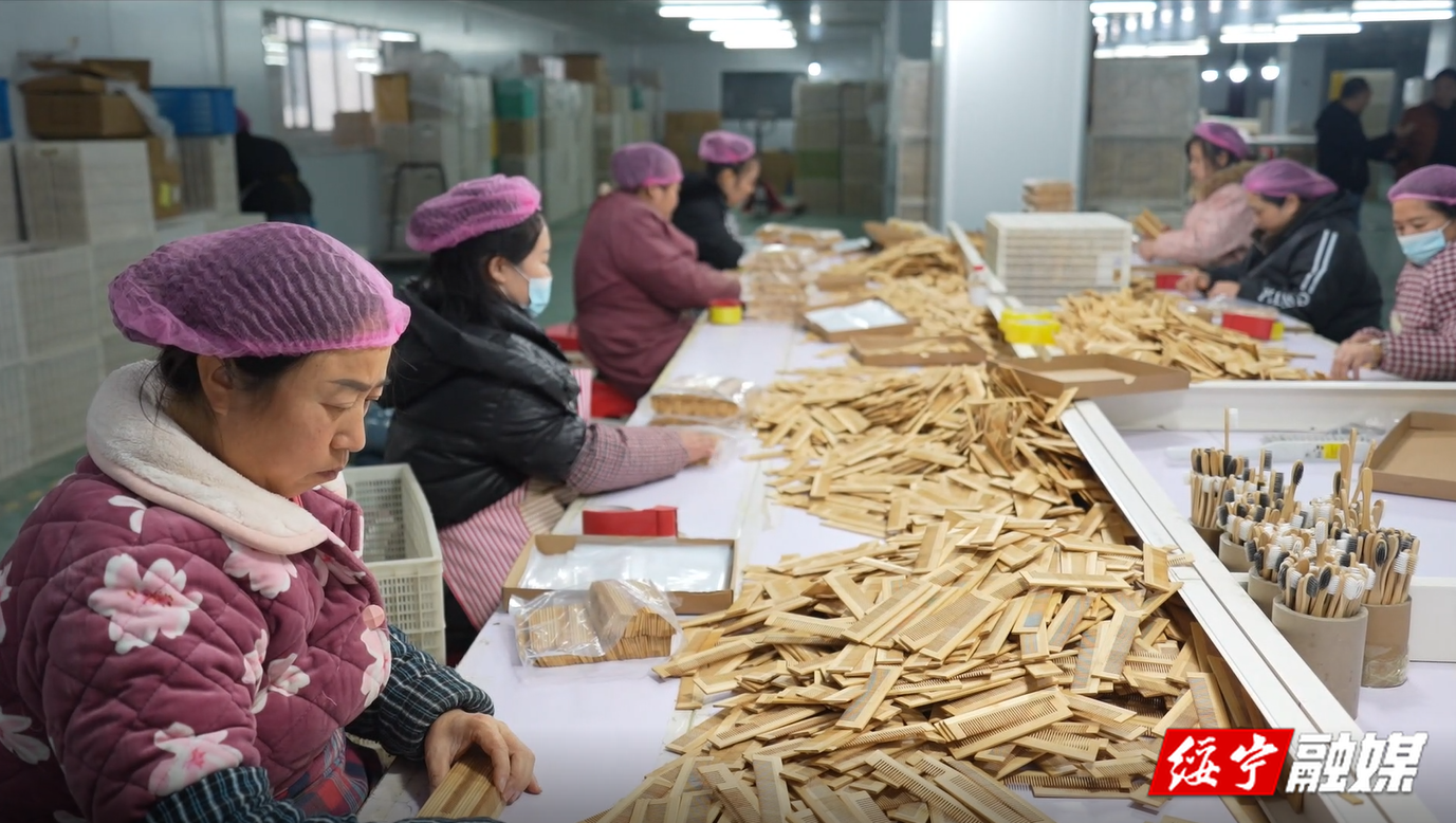 湖南春生竹制品加工有限公司厂长黄朝丽自豪地说:“这款竹牙刷是我们的爆款、创新品,制作时精选三年以上的优质楠竹,后续经过12道工序打磨,核心自主研发硬度和防霉处理,全程无化学添加,彻底突破传统竹制日用品的开裂、发霉。使用耐磨,不易变形,还能自然降解,比塑料牙刷更健康,比普通的竹制牙刷更耐用,现在的订单排得很满,光这款产品,每月发往海外都十几万箱。”