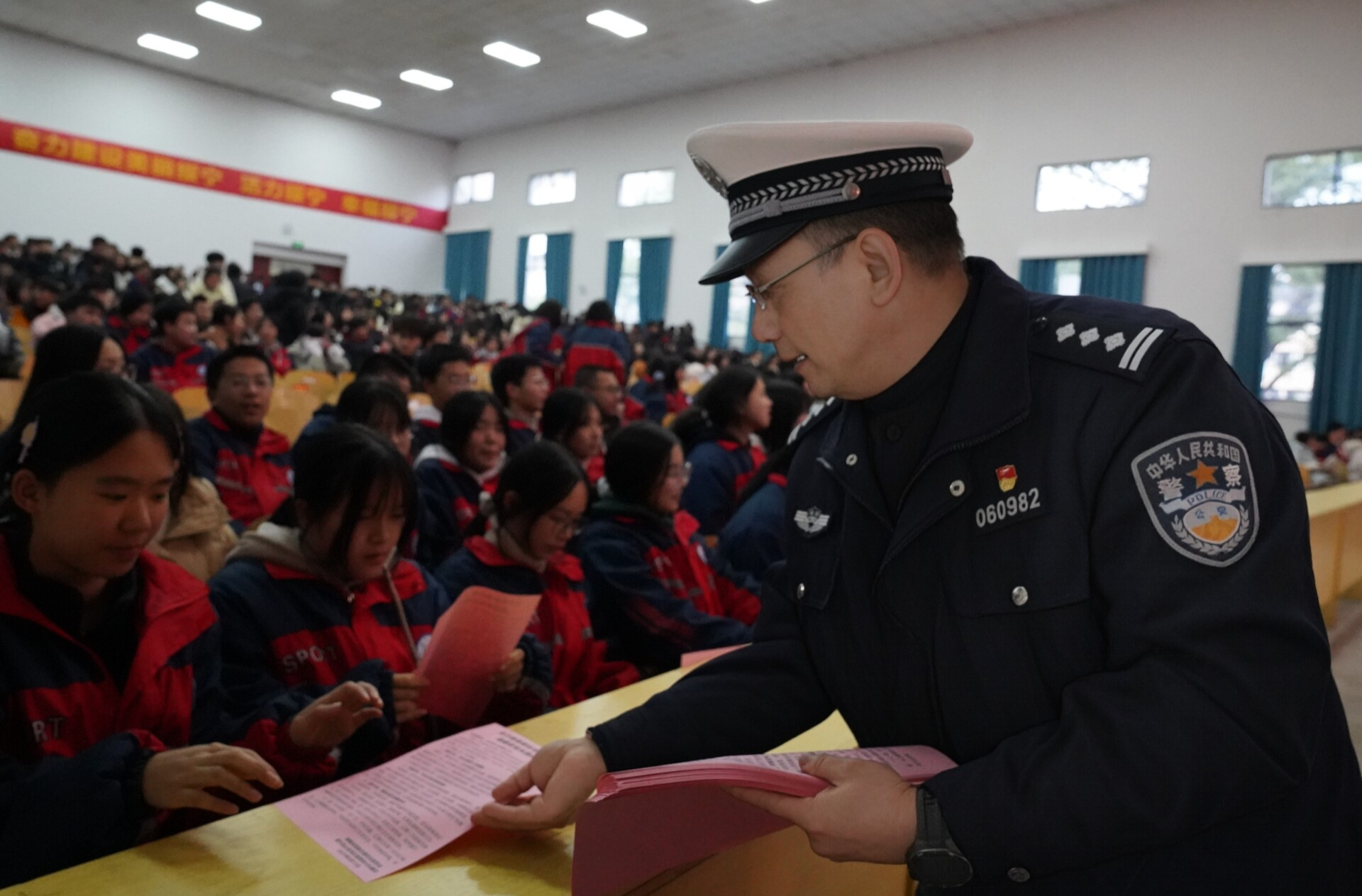 绥宁县公安局交通警察大队一级警长杨继军说道:“春节将至,春运期间车流、人流集中,学生假期出行频次增加,我们特意走进校园开展宣讲。通过案例分析和互动体验,让孩子们直观地了解交通违法行为的危害,掌握自我防护能力。同时也希望通过‘小手拉大手’,让学生把安全知识传递给家长,带动全家文明出行,共同筑牢春运安全防线。”