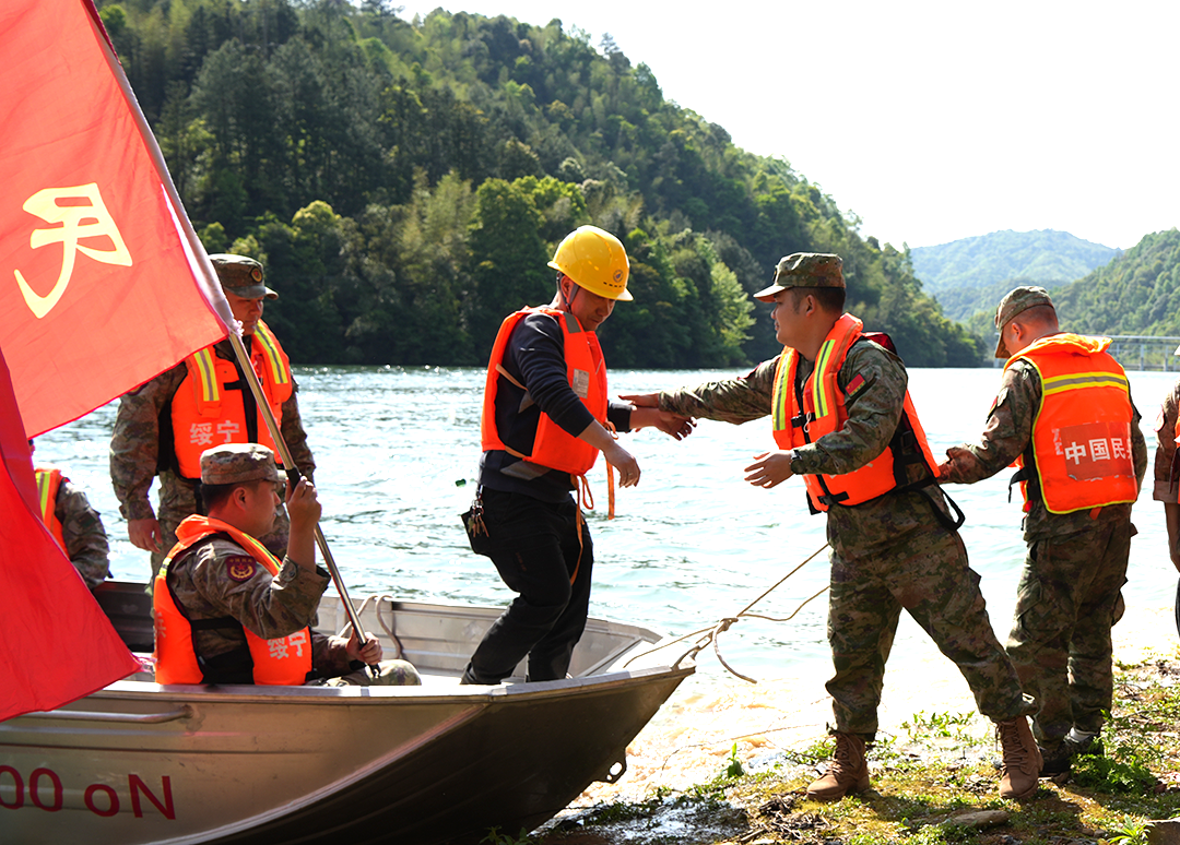 演练设置江口塘电站水库漂浮物排险,百家田村地质灾害避险,同乐村、自然村山洪避险抢险三大科目,完整演示险情预警、应急响应、指挥调度、人员转移、抢险救援直至响应解除全过程。现场民兵应急分队驾驶冲锋舟救援被困人员,作业船只打捞清理库区漂浮杂物,及时消除水库安全隐患;各镇村工作人员依托智慧预警提示,逐户上门通知劝导,有序组织群众撤离,重点帮扶老人、病患等特殊群体,全力搜救被困、掩埋人员,高效做好受伤群众救助和人员转移安置工作。