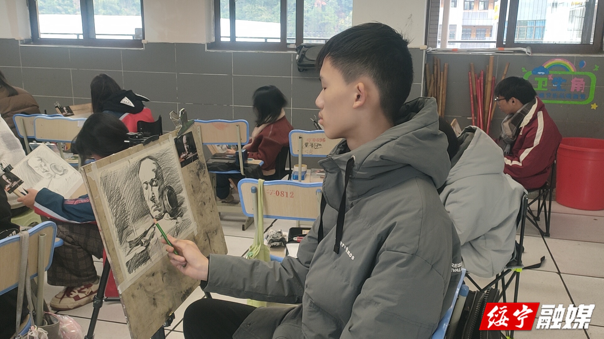 赛场上,看参赛选手龙飞凤舞,刚劲有力;听素描的沙沙声,如战场上的金戈铁马一般;闻水彩的颜料之香,泼墨如画。整个赛场,构成了一幅美妙的画卷。