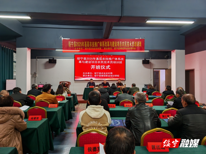绥宁新闻网讯(记者 孙芳华 通讯员 唐威霞)12月23日,由绥宁县农业农村局主办、绥宁县振绥职业培训学校承办的2025年基层农技推广体系改革与建设项目农民技术员培训班正式开班,全县60名乡镇农民技术员齐聚一堂,开启为期4天的专业技能提升之旅。