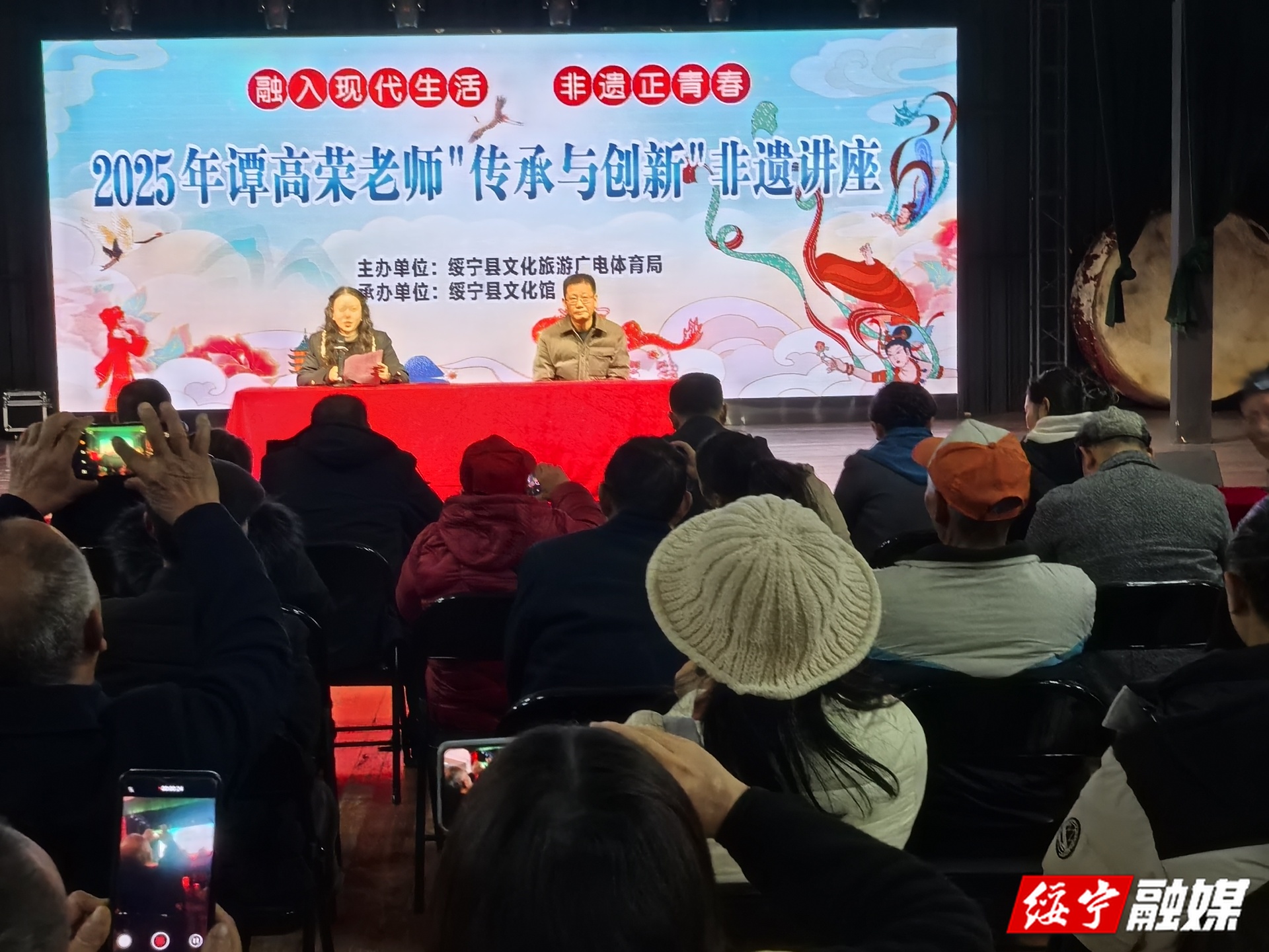 绥宁新闻网讯(通讯员 刘新华)12月31日上午,绥宁县文化馆内暖意融融、座无虚席,一场以“传承与创新”为主题的非遗讲座在此精彩开讲。邵阳市非遗保护传承研究所谭高荣老师应邀而来,为全县56名非物质文化遗产代表性传承人带来了一场干货满满的讲座。