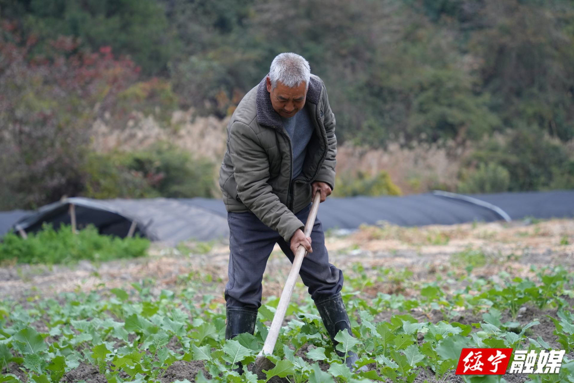 于润妹说:“今年的油菜长得还可以,油菜长起来了,草也长起来,就来修一下油菜,翻一下土,油菜长得更加好。”